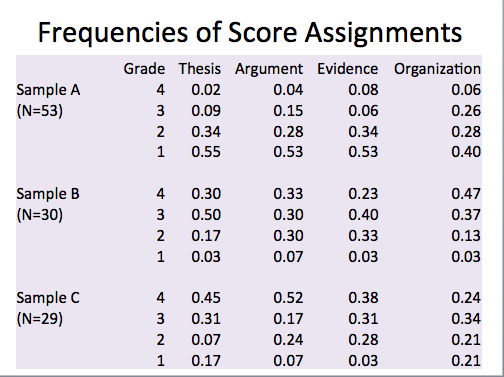 In my directions to students, I note that all essays should follow the five-paragraph format (skipping lines between paragraphs) with an introduction/background paragraph, three supporting paragraphs, and a concluding paragraph. My next few posts will discuss the results of these assessments and include some tips on showing students how to improve their writing.