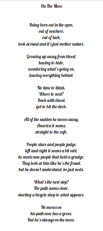 Fences A fence separating sides, never looked so diminishing as now. Fences everywhere left and right in my life. Everything closed off at one point. Hungary fenced off to Czech Republic. Soon being fenced off of my own home. Closed off from real life trapped in a world where no one seems to relate on the outside. The ghetto stripping us of our rights, fenced from the light, closed to the conditions set for us. Treated lower than others making us feel diminished. No hope, no sight, fenced to my real life. One point I believed it would end, let out of the ghetto only to be trapped in carts for days. No food, no space, no necessities, we are going to waste. Our lives mean no more than a dime to them. I wonder why. What have I done to deserve this? I am Jewish, what a crime. A child, suffering a punishment cruel to man. Ripped away from my parents, what if I never see them again I thought? Off to the crematorium my mother went, reuniting with her only in dreams. Fenced from my family now alone with my sister. Stripped from my beauty, my clothes and hair stripped from me fenced from what was mine. Yellow stripes from my head and back. I was called over before, for my looks. Perfect Aryan they said. Blonde with blue eyes. Baffled when they figured I was Jewish. A waste they said, frustrated I was let go. Only to eventually be fenced from my sister once more. Meeting her from a fence everyday. Restricted from where I once was. Off to a side where I was going to live when my sister wasn’t. Seeing her making sure she was okay was the only thing keeping me going. One day she did not come. Worried I waited for days. Concluding she was selected. Fenced off from every part of what my life once was, I have no will. Death looked me in the eyes wishing it would take me but I survived. With the help of others I made it through. Auschwitz to factories in kettle carts once more. No space, no room, no life. Working until we were set free. Fenced from all free life no knowing what it would be like. Not knowing when it was over. Confused but curious freedom in such a similar state. Soon enough the fenced dropped. Not being able to differentiate what was allowed and what wasn’t. The fence disappeared. I reunited with my brother. A long road ahead but eventually the sun will shine again.