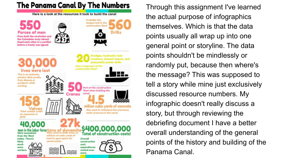 I see teachers sharing Number Mania on social media frequently. I worry that too many use it as a one-and-done lesson. Good infographics need an audience and some analysis. Two of my favorite extension activities with this EduProtocol are the self-assessment and the GIST statement. This student used the Panama Canal lesson I did for the CLIC project. The next day, they were given this debriefing document and asked to reflect on how they did. After they have completed a gallery walk, students are usually pretty critical of themselves. Asking them what they would do differently helps them prepare for the next project with confidence.