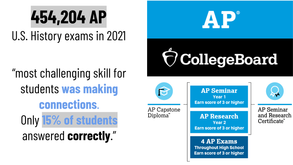 The College Board has reported that one of the most challenging tasks on their exams is making connections between historical figures and periods. When students view historical figures as human beings with common struggles, they connect those narratives to their experiences and lock the historical details into their deeper memory.
